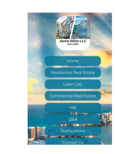 Real Estate at your fingertips with Sonia Dillon LLC FREE APPLICATION in Apple Store and soon in Android as well. Get the new residential and commercial properties FOR SALE IN SARASOTA AND BRADENTON right way and as they hit the market. Also find out how much Hause you can afford, what is the value of your house and commerce. before putting them for sale and/or to find investors. Calculation application links are also included for you to determine right away the cost of your loan and the value of your investment, The FREE Apple Sonia Dillon LLC Application IS https://apps.apple.com/us/app/sonia-dillon-llc-real-estate/id6499046716